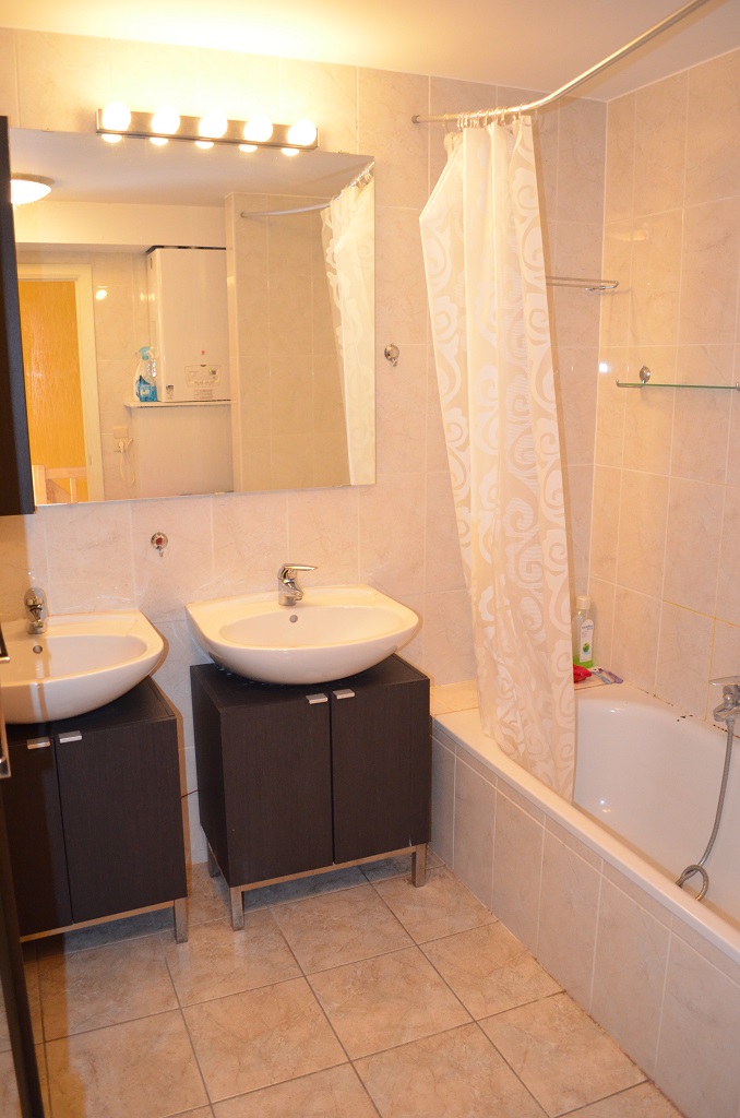 • Salle de bains: (2.65x2.26) 6.00m², carrelage, baignoire, 2 meubles lavabo, armoires, chaudière murale "Bulex" au gaz de ville à haut rendement avec production d'eau chaude