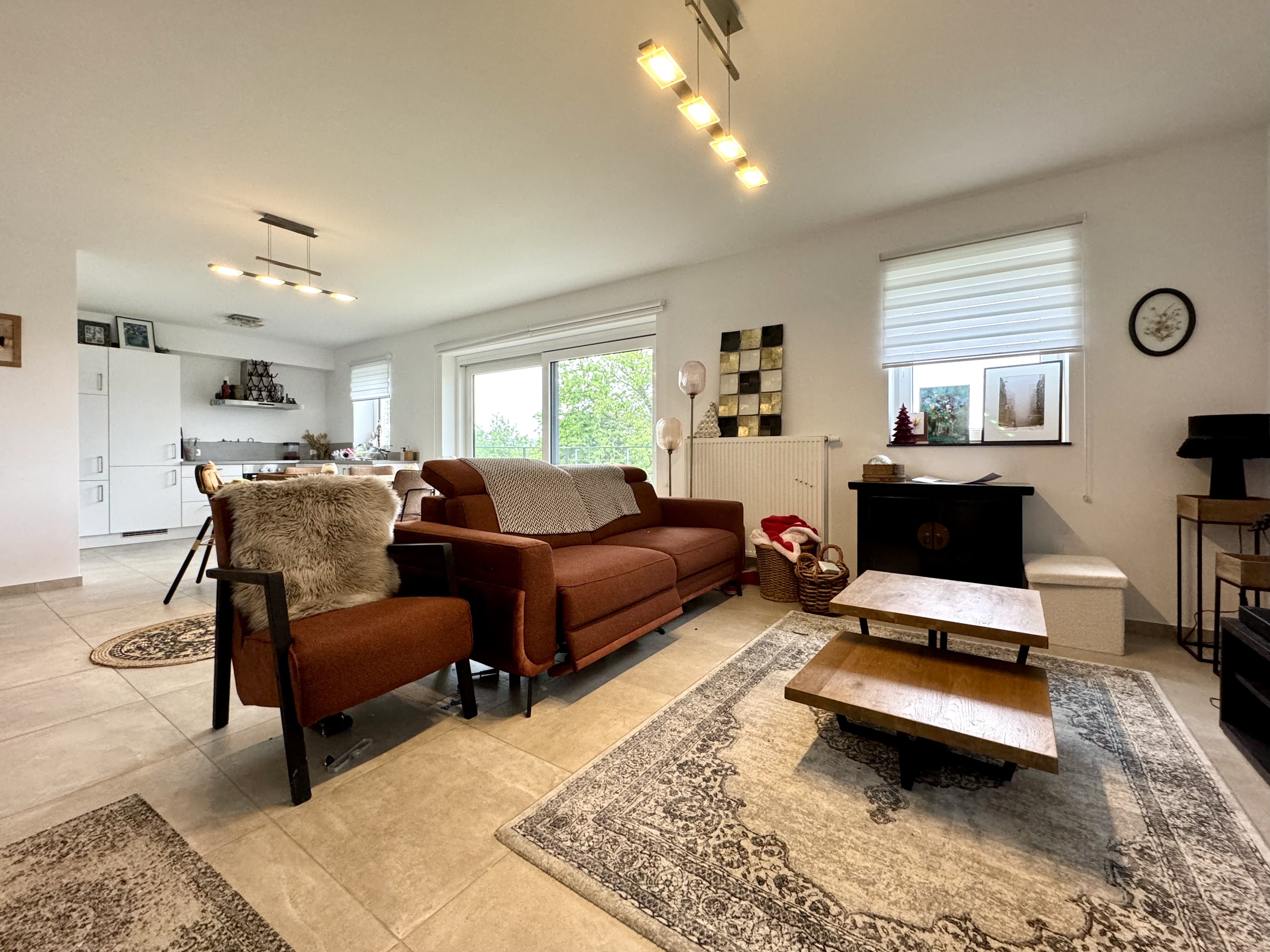 Dans la résidence "Plateau", S-IMMO vous propose un superbe appartement de 100m² au 1er étage avec terrasse, idéalement situé à proximité des grands axes et de toutes commodités. L'appartement se compose: d'un hall d'entrée, d'un living avec cuisine équipée américaine donnant sur la terrasse, de 2 chambres, une salle de bains, un wc indépendant, une buanderie, un emplacement de parking en sous sol et une cave. Luminaires et stores déjà placés. PEB A. Charges communes: 90 € de provision pour l'entretien et l'électricité des communs, frais de syndic, ascenseur, etc... Libre le 1er juin 2024.