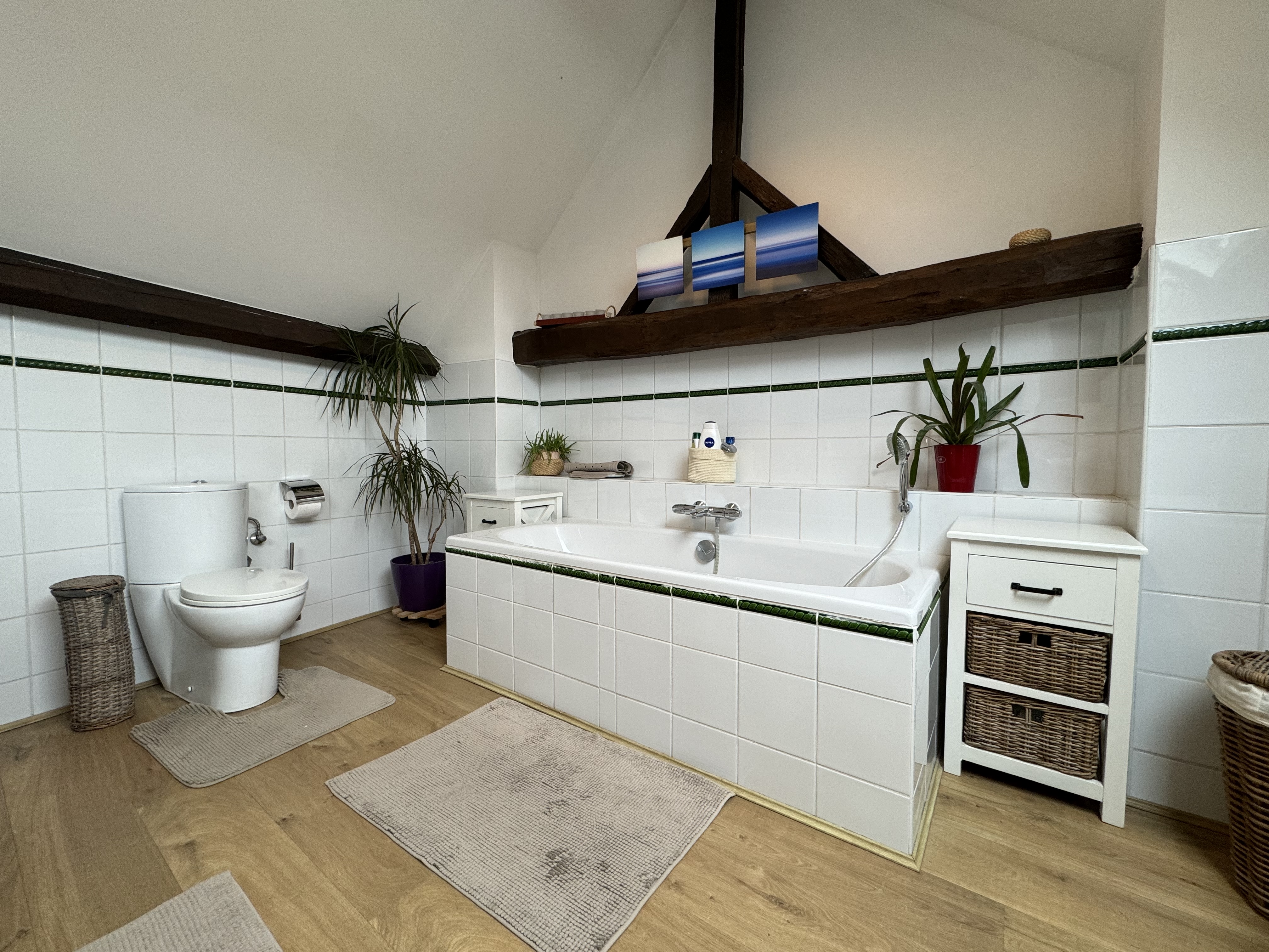 - Salle de bains: (3.56x2.90) 10.33m², parquet, baignoire, meuble double lavabo, w.c.